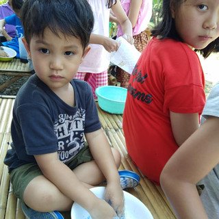 ช่วยกันนวดแป้ง ปั้นแป้ง และทานขนมไทยอร่อยๆจนหมดเลยค่ะ